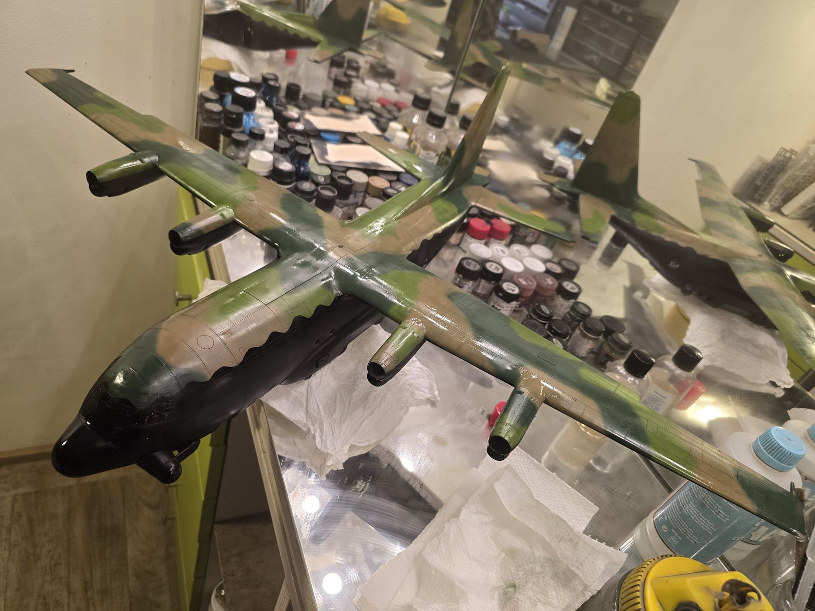 Barvanje je ena izmed ključnih in obenem najzahtevnejših faz gradnje plastičnih maket. Izdelek brez ustrezne barvne sheme izgubi svojo avtentičnost, globino in realizem, kar še zlasti velja za vojaška letala, kot je Lockheed AC-130 H Spectre. Njegovo merilo 1 : 48 omogoča natančno izvedbo barvnih prehodov in maskirnih vzorcev z zračnim peresom oziroma zračnim čopičem (angl. airbrush), seveda pa to delo zahteva mirno roko, potrpežljivost, dobro pripravo površine ter ustrezno orodje in pripomočke. V članku so omenjene najpogostejše napake pri barvanju, nekaj stavkov pa je namenjenih tudi nasvetom za pravilno vzdrževanje zračnega peresa.